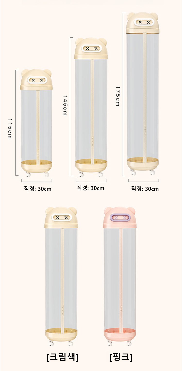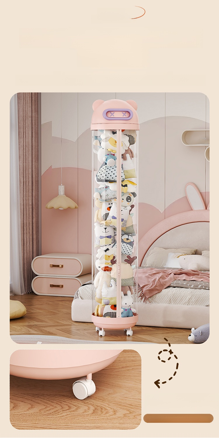 바퀴 달린 고투명 지퍼형 곰돌이 대용량 인형 정리함